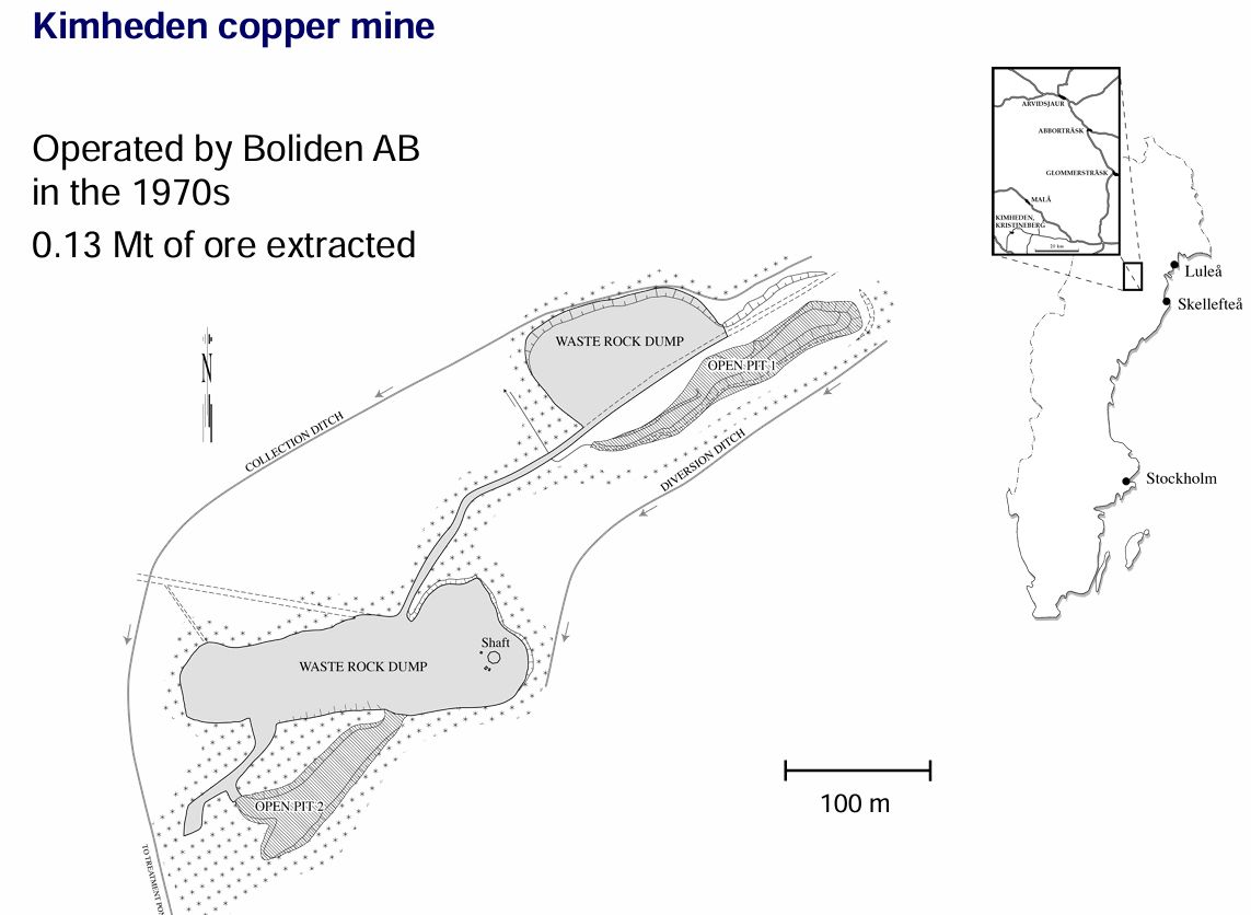 Lähteet: In-pit backfilling of waste rocks under dry cover – a case study from Kimheden Cu mine, Sweden JA Evaluation of the effectiveness of backfilling and sealing at an open-pit mine using ground penetrating radar and geoelectrical surveys, Kimheden, northern Sweden.